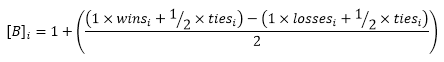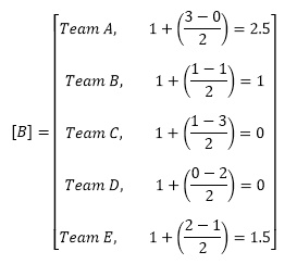 The matrix B is a one-dimensional vector array filled with each team's record calculated by the equation: