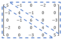 Note the matrix M is symmetric. Because of this property, the system can be decomposed into a lower-triangular matrix which can be easily used to solve the system. This is accomplished computationally to find the solution matrix X, which holds the ratings for teams A-E.