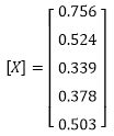 To easily check these numbers and to solve the system, use a calculator to setup the two matrices M (5x5) and B (5x1) with the example's numbers. Solve