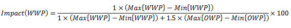 The effective impact of a team's Weighted Winning Percentage (WWP) and Opponent's Winning Percentage (OWP) on its RPI is a representation of how much that team's Weighted Winning Percentage (WWP) and Opponent's Winning Percentage (OWP) actually affected the calculation of its RPI. As stated earlier, Weighted Winning Percentage (WWP) is weighted 35% and Opponent's Winning Percentage (OWP) is weighted 65%. However, the effective impacts can be calculated once the season is complete (i.e. after rankings have been frozen). The equation to find the effective impact of a team's strength of schedule is below.