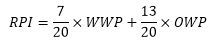 This weighted record is used for the 35% of the RPI formula as each team's Weighted Winning Percentage (WWP). The regular, non-weighted team records (wins and losses) are used to calculate a team's Opponents' Winning Percentage (OWP).
